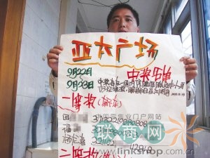 亚太广场的中奖公告。万凌云 摄