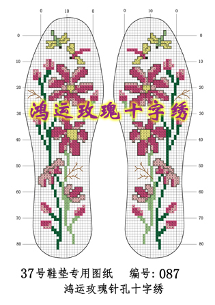 惊 !!这种十字绣鞋垫你见过吗 产品简介 我厂经过3年的研究,现自主研制出一种新型十字绣鞋垫,它是将民族传统的手工艺结合现代先进技术,按十字绣规律巧妙,均匀在多层棉布上用专用机器冲出万余小孔,孔从鞋垫的正面通到鞋垫的背面,对鞋垫体毫无损伤。小孔直径1.0毫米,两孔中心距2.5毫米。横竖排列有序,每4个针孔,就形成一个小方格,这样每双鞋垫上就有万余个小方格。无论有无刺绣经验,只需对孔穿针引线就能绣出精美的图案。 1, 鸿运玫瑰十字绣的针孔鞋垫上因为有针孔,解决了扎针难得问题。 2, 缩短了绣制时间,普通的鞋垫绣一双要10天的时间,我们的产品3天就可以绣完一双。而且绣出的针脚横竖排列有序,针脚绝对均匀。 3, 在功效,质量上均有成倍提高,综合成本成倍下降。多家权威机构称,该产品使用性极强,经济效益社会效益巨大。它的出现必然会导致整个十字绣鞋垫行业的变革,其它半成品鞋垫将被淘汰。 注; 每套含针孔鞋垫一双,绣线一板,绣针,十字绣鞋垫专用图纸一张,精美的外包装。 请登录; www.wto163.cn www.wto163.net.cn 业务联系QQ:1392814010 济南玫瑰鞋垫厂