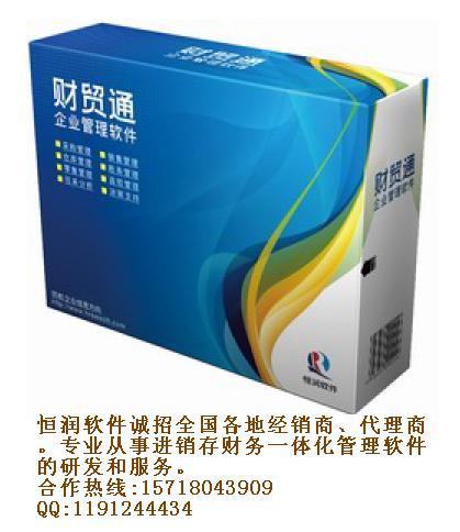 [原创]恒润软件诚招全国各地经销商、代理商 恒润财贸通软件适用于中小企业,将供应链与财务管理融为一体;全国独创的二次开发平台,支持插件技术与外部模块。贯彻“质量、价格、服务、诚信”的理念,提供业界最具竞争力的产品和服务; 恒润软件以“协助企业快速发展”为使命,秉承“永远站在用户的角度”的研发理念,通过软件技术满足用户的管理需求。同时快速在全国范围内整合营销渠道,构建整体产业链优势,为用户提供专业化、本地化的及时服务,推动企业快速成长。 恒润系列软件是目前市面上首款可以DIY的管理软件,而不是普通的通用软件。为各户提供了模块表,客户可以根据自己企业的不同管理需求任意选择模块组成适合自己需求的管理软件。换句话讲,恒润提供的是一个新型的开发平台。恒润软件具备繁衍的能力,可以根据环境的不同,产生新的模块。 我们需要的是诚信、负责的代理商,实现厂家代理共同成长壮大,互利双赢。