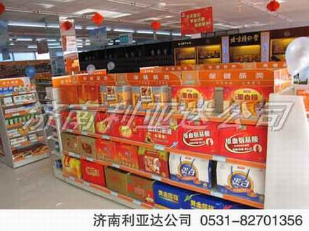 济南利亚达商业设施有限公司,公司主营药店货架、超市货架、仓储货架、超市货架厂家、超市货架厂、汽车货架、展示架、医药货架、购物车、购物篮、收银台等。联系电话:0531-82701356 公司网址: