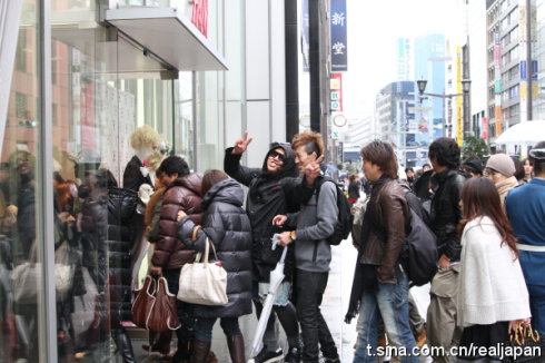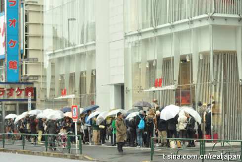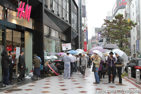 LANVIN for H&M发售日 粉丝冒雨排长队(图) 23日是LANVIN for H&M发售日, LANVIN for H&M排队 08:37 AM(日本时间)at原宿 89人排队中。