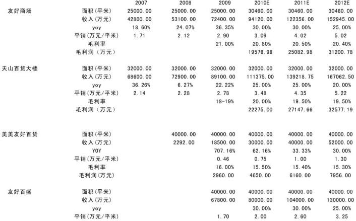 上海虹桥新店接手了天山商厦长房广场面积扩大到5万平方米而且直通地铁,该店原业绩仅2亿/年,百盛接手后明年开业业绩将如何,预计至少比百盛虹桥老店要好,虹桥老店2012年中租约结束