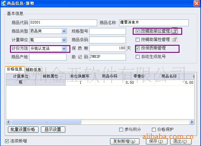 用户在完成以上必要的参数设置之后就不必在担心药品生产批号和保质期管理的任何问题,系统可自动跟踪管理。销售人员不仅可以清楚地知道每一次销售的药品的生产批号和保质期安全情况,而且可以随时查询尚未售出的药品的生产批号和剩余保质期,以便决定销售顺序或者是否举行必要的促销活动。这样的系统才能算是给力。 医药商品拆分销售和计价是医药销售行业一个很“小”的大问题,事实上,也没有哪个行业的销售比医药销售面临更多的“商品拆分”销售。对于“按方抓药”的客户,药品拆分销售和计价是医药销售的必需,然而,管理规格各异的众多药品的拆分销售和计价无疑是一件非常繁琐的工作。