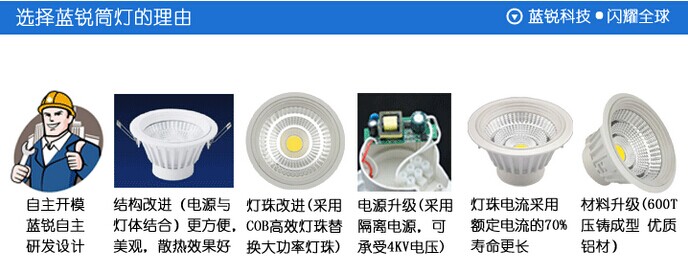专卖店专用LED灯具,蓝锐LED筒灯,产品均通过国家专业机构检测,并通过CE、FCC、ROHS产品认证,安全可靠,质优价廉,用途广泛。