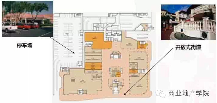 典型的Lifestyle Shopping Center通常有一条步行休闲购物街、若干条副街及休闲广场组合而成。而国际购物中心委员会定义中所指的开放空间,并不是室内大型开放空间或者中庭,而是室外的自然空间。尽管通过一流的商业建筑设计,Shopping Mall可以营造出舒适的购物环境,但是室内和室外的不同感受却不是可以设计出来的。