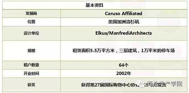 与Shopping mall和传统的商业步行街相比,Lifestyle Shopping Center更加注重环境和建筑设计,突出合理的布局、特色的风格和舒适、优雅的环境,追求与消费者阶层生活品位、消费习惯相匹配。据统计,美国129家Lifestyle购物中心的开发成本中,用于环境、景观设计及施工方面的成本占到5~10%左右,甚至更高。