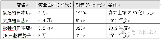 2012—2013年度,大阪百货销售合计6100亿日元。新大阪车站城附近的梅田地区已经成为日本最大的百货业态集聚地。