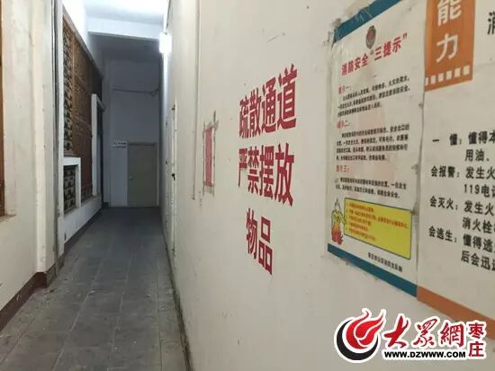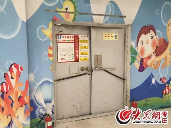 银座购物广场台儿庄店:疏散通道尽头的门是关闭的