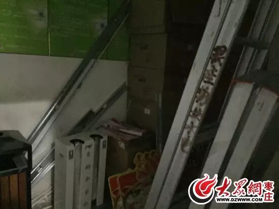 银座购物广场台儿庄店:一安全通道门打开后发现堆放着杂物