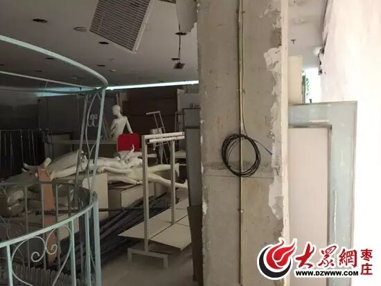 银座购物广场华山店:广告幕布后杂物堆积、电线头裸露