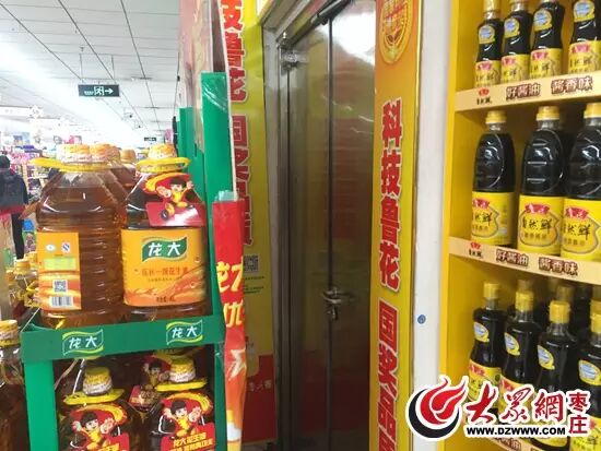 银座购物商店华山店:一摆满食用油的货架堵住了消防安全通道