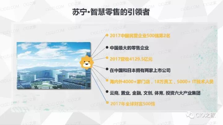 苏宁对智慧零售的定义是:在多样性的场景中,以智能科技为手段,满足个体用户的商品、内容和服务需求。因此,智慧零售包括两个层次:对外,围绕着用户、围绕着用户体验;对内是科技,并将科技用在恰当的位置,要让消费者和用户体验到好的服务。苏宁总结出一个结论:过去依靠资源驱动型换来的高增长不可维系。苏宁必须要有掌握商品、引导供应链的能力,否则“别人感冒你就发烧,别人发烧你就等死。” 智慧零售的核心是数字零售,表现在大数据的挖掘与趋势分析上。其背后对应的做法是:以大数据为牵引,从B2C转向C2B反向定制,推动有效供给。