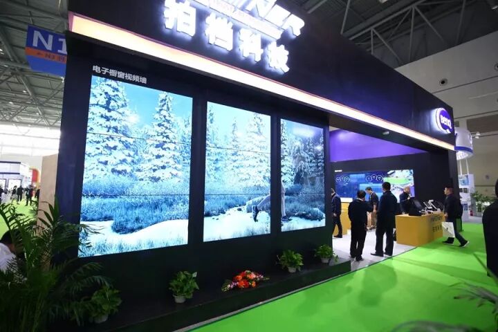 展馆的背面则是由3组1x3的拼接屏组成的电子海报视频墙方案。该大画面效果震撼,远远看去,十分吸睛,成功吸引大批观众进场参观。该方案可广泛应用于商场百购,可率先抓住顾客眼球,吸引其进店消费。