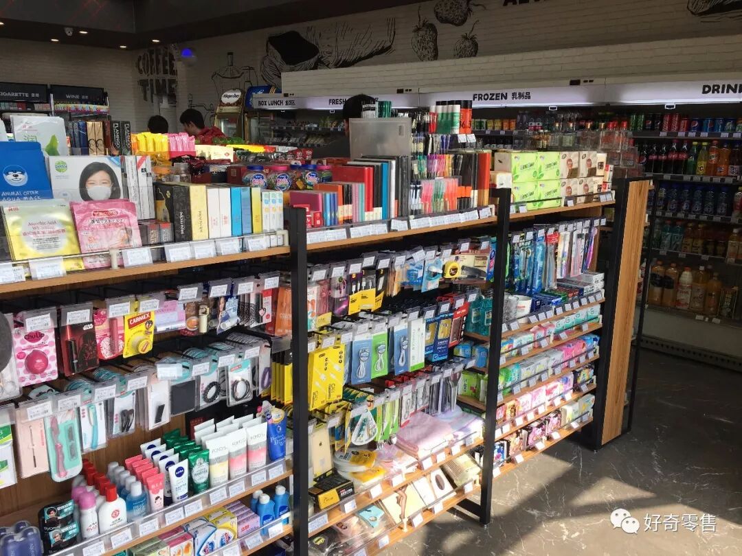 该门店在杂货类别上的选品笔者不太认同,并没有做到精简,本身这个品类的商品消化率并不高,甚至有的商品卖到过期都卖不动,相同功能的重复商品太多就导致最后陈列上层的面膜没有位置陈列,顾客看不到商品正面样式了。