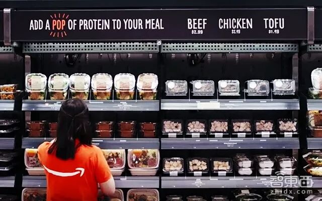 Amazon Go的SKU中速食、餐饮品类占比较高,尤其是亚马逊收购全食(Whole Foods)后,在Amazon Go开设了全食专柜,售卖即食加工的快餐食品。无论Amazon Go的选品还是选址,都针对城市白领这支消费主力军,即食类商品是该消费人群的高频需求之一,店内一般备有补货员。在该商店的透明后厨中,消费者可以看到忙碌的后厨人员。同时,在Amazon Go的酒水货架前,也配备了员工来专门核查购酒者的年龄信息。