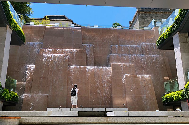 叠水广场——藏于“门”后的一方“叠水”瀑布灵感来自于福州的“鼓山瀑布”,层叠的现代景观造型配合瀑布飞溅的水花,将整个故事引向高潮。