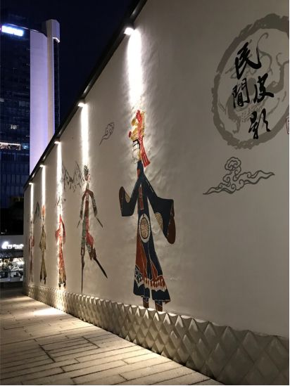 与主街面热闹繁华的商业气氛截然相反,背街则打造了一条幽静错落的景观巷道,结合“雾林”“油纸伞”“皮影彩绘”“灯笼屋架”等富有福州元素的景点小品,为游人提供了闹市中难得的一处漫步之所。