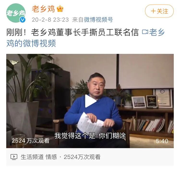 老乡鸡真正走上网红之路,是从去年2月份“董事长手撕员工联名信”开始的。