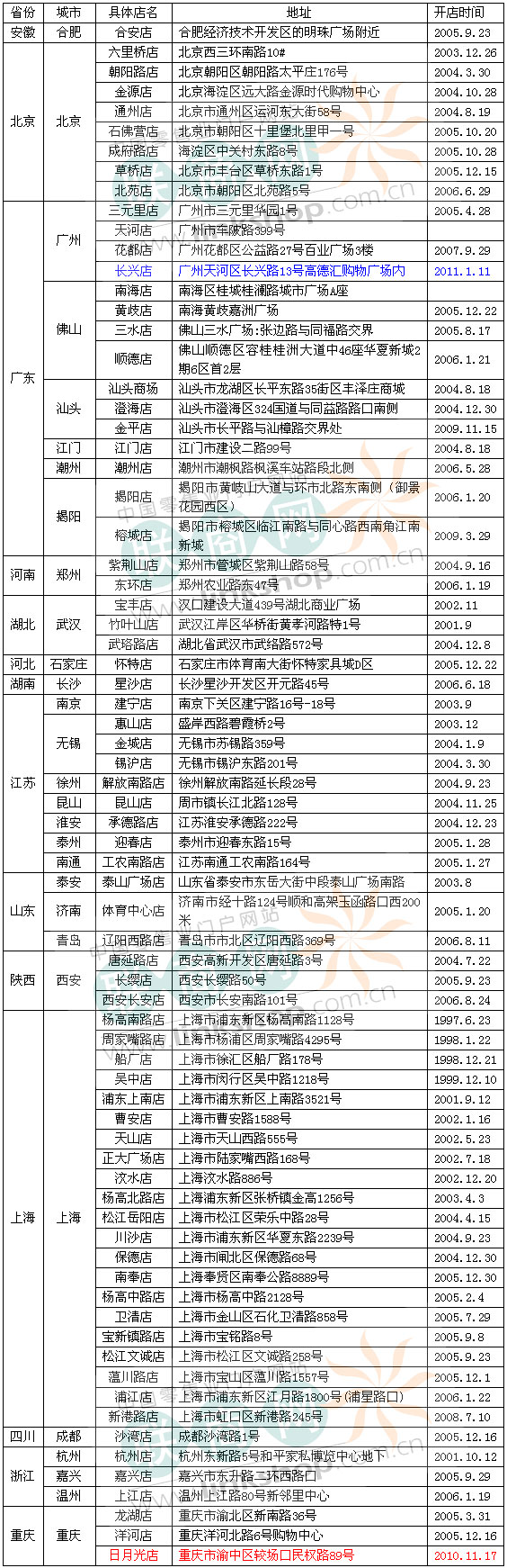 四、2010年卜蜂莲花在华关闭门店(5家)