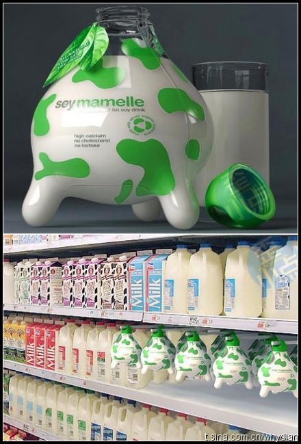 这是俄罗斯品牌KIAN为自己旗下的牛奶产品准备的一款可爱无敌的包装,造型就像是一只奶牛,几个饱满的奶嘴变成了支架。