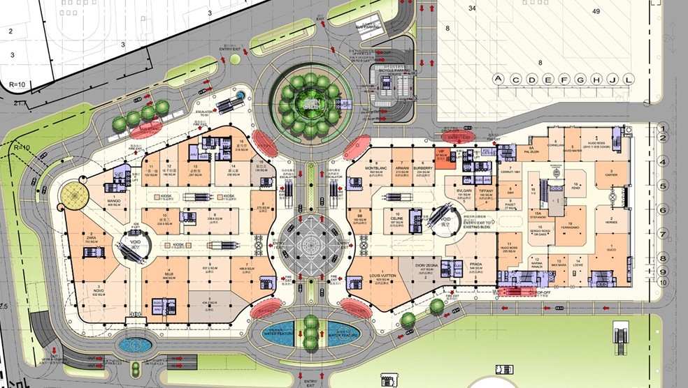 左边是潮牌、餐饮,可以看见ZARA、MANGO、MUJI、NOVO、丝芙兰,餐饮部分就完全稀烂了右边是奢侈品,可以看见的有LV、PRADA、宝格丽、蒂凡尼、万宝龙、CELINE、ZEGNA,有个ARMANI不知道是哪个AMARNI;然后现在巴宝莉的位置被爱马仕取代,国广进门是FENDI(YSL现在的地方?),hugo boss上面有两个,不知道是不是也要移其他的看不清楚了