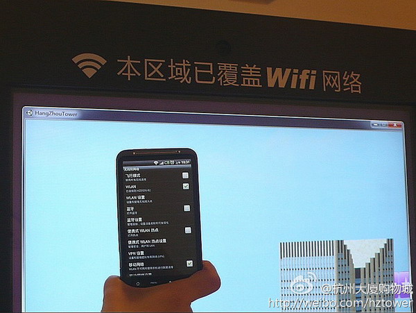 OK,今天杭州大厦的官方微博表示“现在A1楼、B1楼、B2楼、C3楼自动扶梯口、CD2楼连廊处的导购屏附近都可以收到免费WIFI网络哦,WLAN名:HZDSDG“;貌似就之前说过未来杭州大厦要整个购物中心都覆盖无线网络。