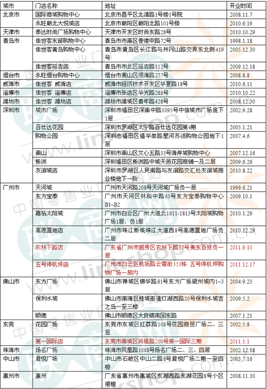 1、广东深圳:计划2012年3月在深圳宝安区开新店。