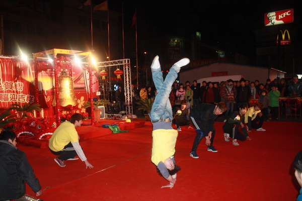 12月31日晚19:30,焦作市三维商业广场的北广场就已人山人海,精彩的魔术、杂技、舞狮和街舞等节目吸引了数百名顾客驻足观看。