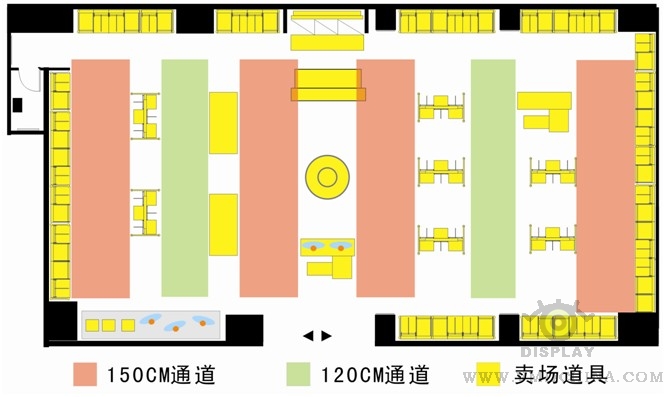 我们通过上面的两个图可以充分的看出卖场通道规划的一些规律和正确规划方法: