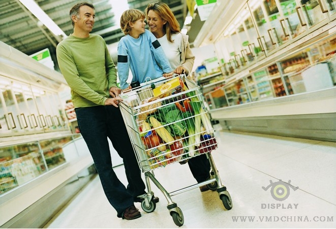 超市里的通道宽度设计的时候充分考虑了购物车的大小,当顾客向相而行的时候才不会太拥挤,同时也让顾客在宽敞的通道里购物时感觉比较愉悦。