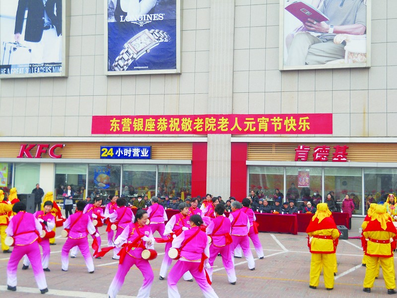 2月16日,东营银座商城广场热闹非凡,银座邀请了文汇敬老院与牛庄敬老院老人共度元宵佳节。精彩的锣鼓、舞狮、杂技、表演唱等节目让老人掌声不断,笑声不断。精彩的节目也吸引了周边居民与前来购物的顾客驻足观看。银座商城自入驻东营以来,积极致力于各项公益事业,已连续8年与敬老院老人共度元宵佳节。每逢节日给敬老院老人送礼物,也已经成为银座人的惯例。他们把老人们当做了自己的亲人,不仅在物质上给敬老院老人帮助,同时在精神上也给予更多的关心,希望老人们有一个幸福快乐的晚年。(王爱华)