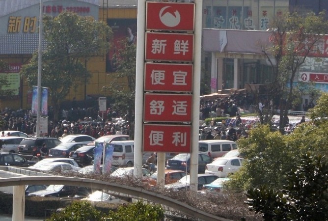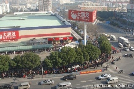 嘉兴大润发 抢盐的顾客排长龙,不知道的人还以为超市清仓大