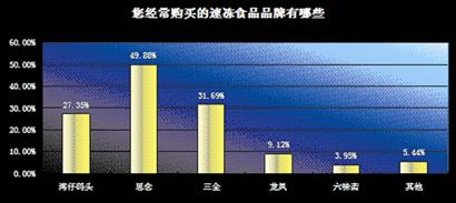 速冻食品中,思念、三全等老牌食品依然占据销售主角,有接近半数的市民对思念品牌有着很深的感情。湾仔码头等品牌由于口味新奇,也后来居上,受到市民欢迎。