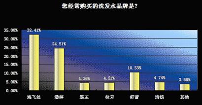 接近89%的受访市民会选择在超市购买洗护日化产品,可见,尽管有细分市场如屈臣氏等的出现,大型超市经营此类商品仍有绝对优势。洗发水产品中,海飞丝、潘婷处于市场领先地位,两大品牌占据了半壁江山。