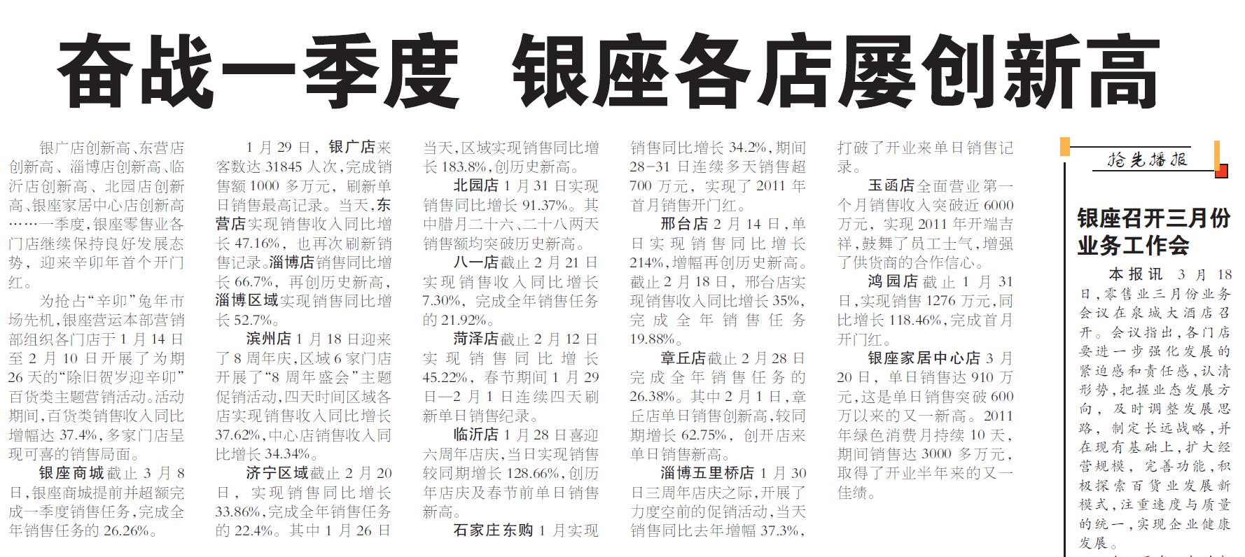 主题:备战一季度,银座各店屡创新高