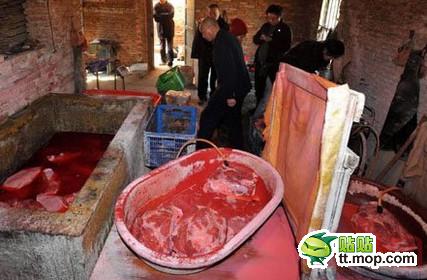 “价钱这么便宜是不是死猪肉做的?”记者询问李哲。李哲随即答道:“这已经是行业内公开的秘密”。李哲补充道,“像使用牛肉膏将猪肉变牛肉,已经是早几年前的小把戏了,我们现在都已经不用了”。 当记者提出是否能看看生产车间时,一家人的态度明显警觉起来,李哲称,最近广州的风声很紧,其已不敢再在广州继续加工腊肉,现在的货基本都是从湖南长沙运过来的。