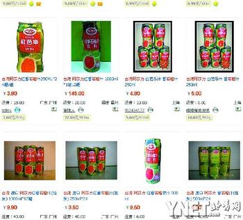 记者昨天在淘宝网上搜索发现,大量台湾进口饮品等仍在网上销售。其中已经被台湾 “卫生署”封存、回收、下架的起云剂产品,如 “大湖草莓农场”出品的水蜜桃粒、荔枝汁仍在淘宝销售。