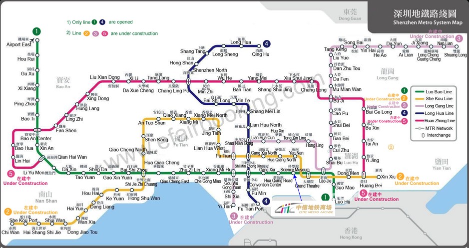 中信地铁商场位于深圳市交通主干道深南路与上步路交汇处,与地铁1号线科学馆站和上步地下通道、地面连接公交总站(地铁与公交的转换点之一)、的士站等多个交通站点,并与中信城市广场、华联街、深圳购书中心地下商场相互连通,是城市中心区最大的地下商业。地铁科学馆站:日平均客流量25万人次、节假日达40万人次。中信城市广场是一个集观光、娱乐、购物、餐饮、休闲、展示于一体的大型综合性Shopping Mall,中信城市广场聚集国际著名大商家,吉之岛百货、西武百货、新南国电影城、逸和轩酒家、国际休闲街区、哈根达斯、茂昌眼镜、必胜客、LV、王子厨房、屈臣氏、SONY、星巴克等。