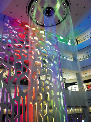 韩国乐天百货里,名品云集,所有世界顶级奢侈品都聚集于此。而百货店追求的不仅仅是品牌效应,更重要的是购物环境。2007年起,乐天百货店以为顾客提供最佳服务、为各个百货店配置丰富的文化设施和便利设施,将百货店营造成引领时尚的综合生活文化空间。在乐天釜山光复店的共享大厅里,一个巨型水幕吸引了顾客的目光,这里定期举行音乐会演出,让顾客在购物之余得到高雅的文化享受。