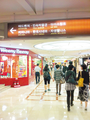 韩国乐天百货最大的特色之一是,把儿童乐园建在了百货店里。这样,很多带孩子的妈妈不但能轻松购物,还让孩子们有了愉快的游乐去处。
