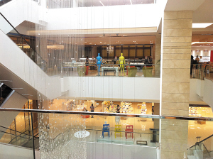 流连于商场内部,无论站在哪个角度,或者朝向那个方向,映入眼帘的都是一幅时尚画卷,玻璃隔断的镂空印花,装饰墙面的艺术作品,点缀橱窗的工艺玩偶无一不彰显着温馨情怀和独特魅力。