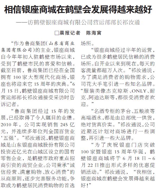 主题:相信银座在鹤壁会发展得越来越好——访鹤壁银座营运部长祁汝通