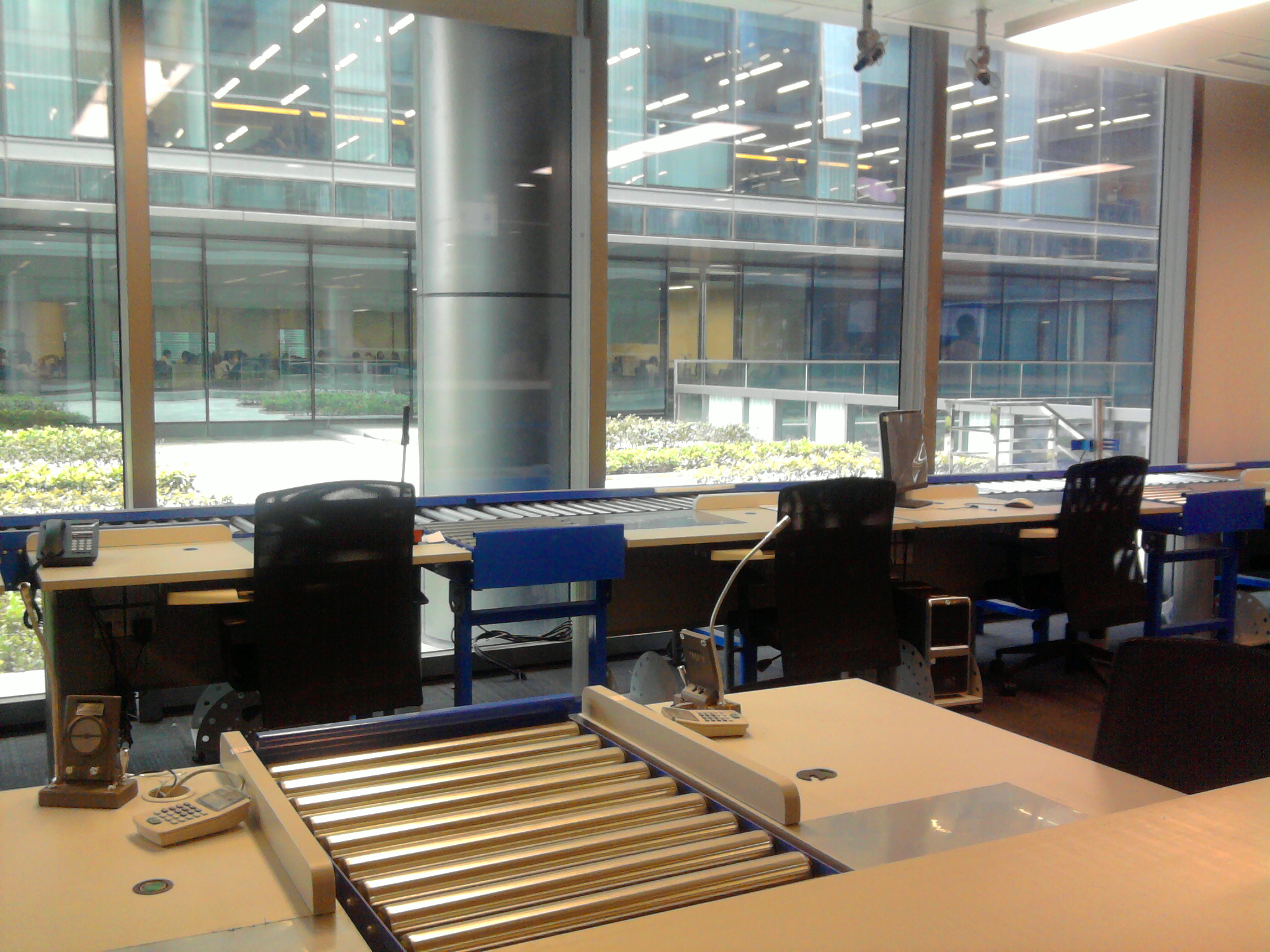 图为财务共享服务中心,现有1000多个席位,主要进行财务核算、各种单据的管理等,各种单据通过管道自动传输。