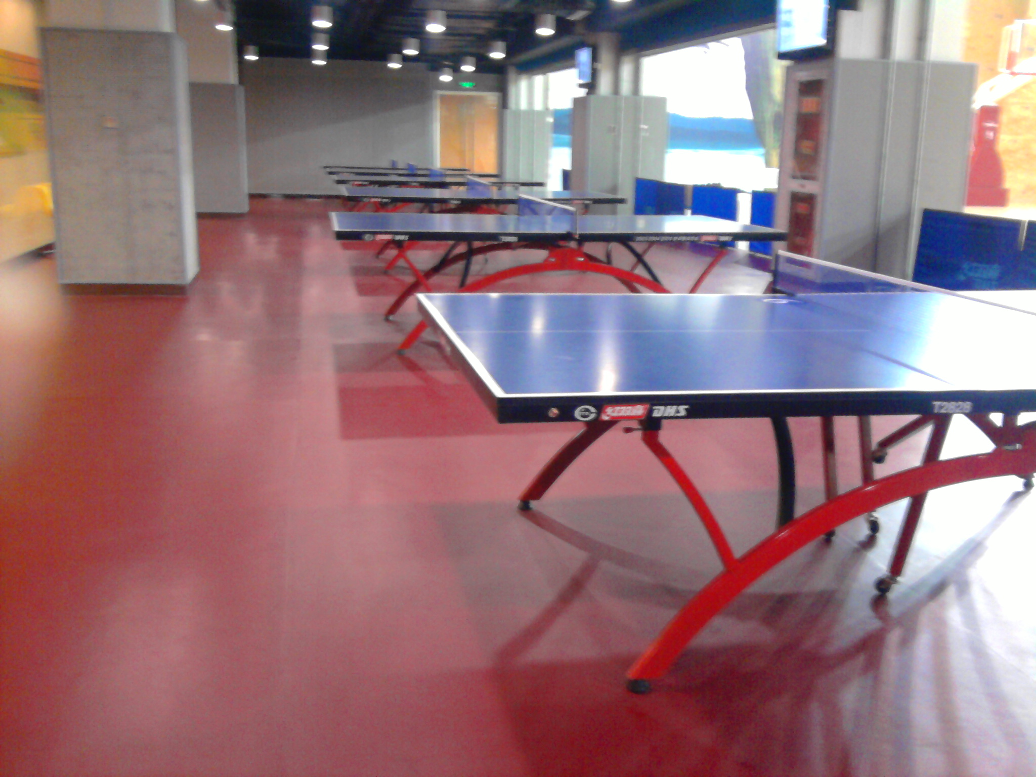 图为室内篮球场,篮球场一侧设有攀岩、乒乓球桌,篮球场可改为羽毛球场。