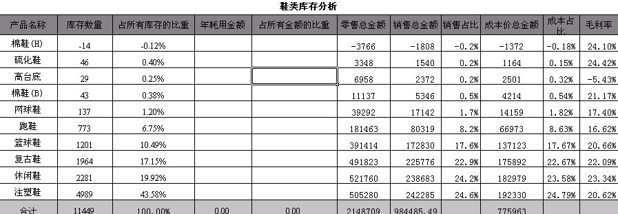 | 鞋类库存分析 | |||||||||
