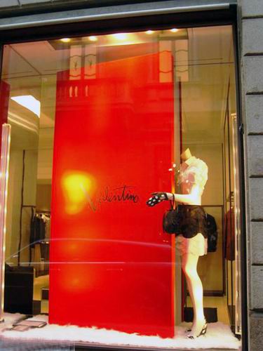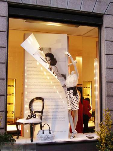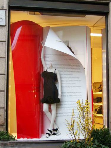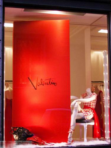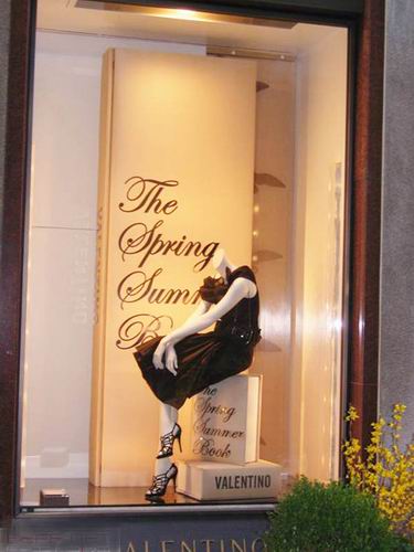 意大利米兰的世界顶级品牌名店街,是整个米兰最为繁华的地方,位于这个名店街上有不少国际大牌的品牌店在这里汇集,所以“名店街”的名字,也算是实至名归了。而在Valentino的品牌店中的橱窗陈列,却显得十分的有趣和精彩,橱窗的设计非常有创意,原本静态的橱窗人台,以巨大的书籍为背景的展示时候,给观者的感觉却犹如从杂志中走出一样。使静态的橱窗给以动感,橱窗中的模特似乎离我们也很近,鲜明的色彩,让人们感觉到时尚和富有时代感。Valentino的品牌店中的橱窗陈列可谓经典之作。
