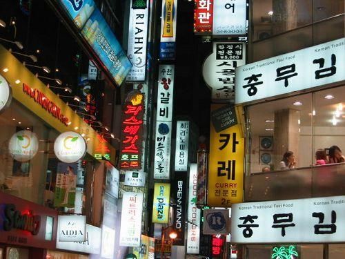 明洞商业街,面积0.44km2常住人口5千人, 1天的流动人口超过200万,每年400万人以上的外国观光客来此,2000年3月被政府指定为观光特区。