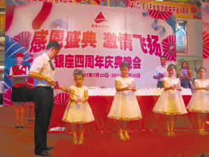 7月20日,邢台银座商城迎来四周年庆典。据了解,该商城自2007年入驻邢台以来,坚持为牛城百姓提供高品质的产品和最优质的服务,得到社会和市民的一致认可,先后被授予“河北省消费者信得过单位”、“消费者最放心购物场所”、“河北省百城万店无假货示范店”等荣誉称号。本报记者 冬子 通讯员 车建霞 图文报道来源石家庄新闻网)