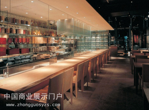 日本Patato餐厅室内设计,餐厅中的实木长型餐桌。