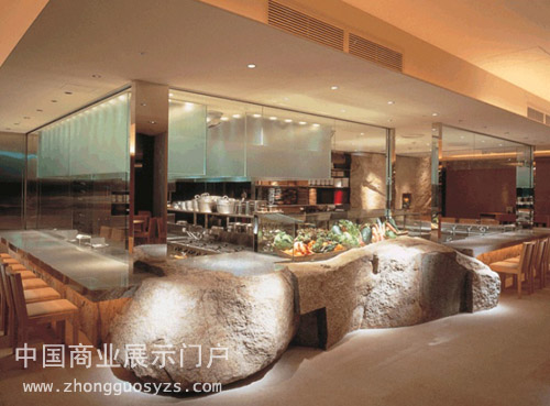 日本Patato餐厅室内设计,单间中的全石材的餐桌和墙面石材装饰。